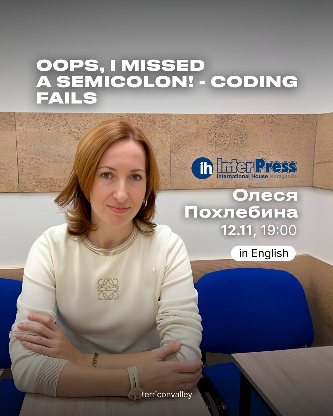 Мероприятие будет полезно студентам, айтишникам, начинающим специалистам и всем, кто хочет поработать над стрессоустойчивостью и улучшить английский для профессиональной коммуникации. Участие бесплатное, регистрация по ссылке: https://terricon.kz/ru/it