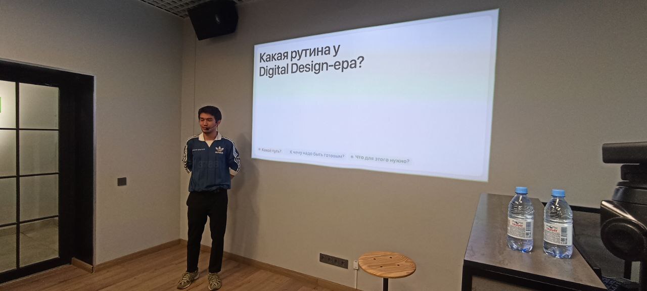 Во время лекции участники не просто слушали, а вели активный диалог со спикером, разбирая примеры, споря о границах допустимого и обсуждая реальные кейсы из портфолио. Аспандияр делился личными принципами работы, лайфхаками по поиску нестандартных референсов, а также объяснил, почему “красиво” в digital-дизайне — это не про субъективность, а про стратегию.