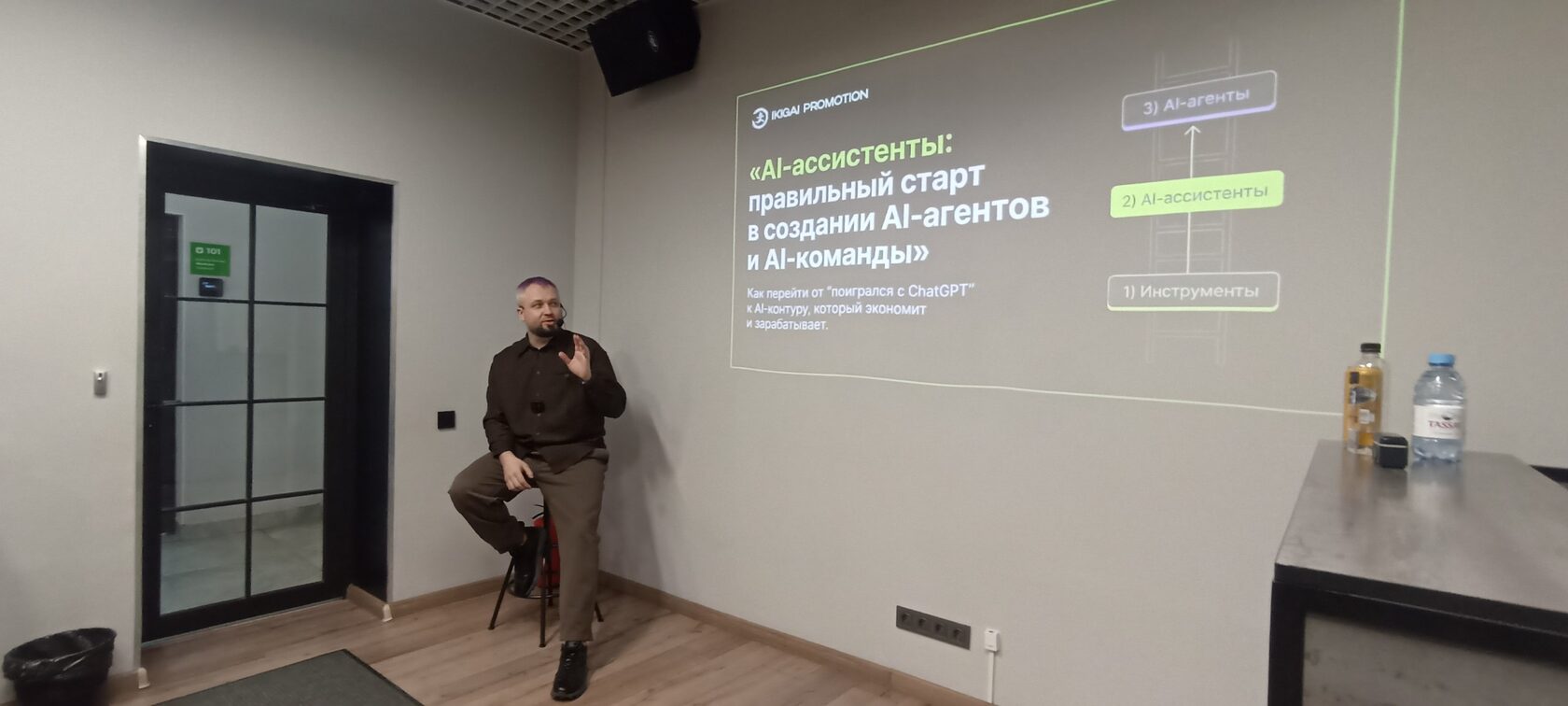 25 февраля в IT-хабе прошла лекция Сергея Конева, сооснователя компании IKIGAI PROMOTION и AI-эксперта, о системном внедрении AI-ассистентов в бизнес-процессы. Встреча собрала предпринимателей, маркетологов и руководителей, которые ищут практичные инструменты автоматизации.