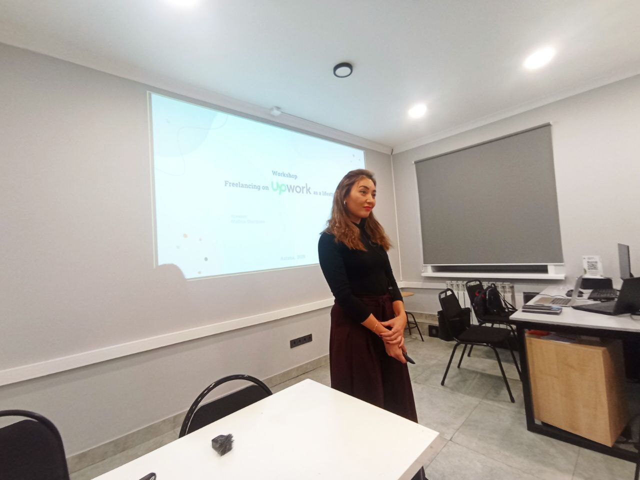12 февраля в IT-хабе состоялась лекция для фрилансеров и digital-специалистов, посвященная возможностям работы на платформе Upwork. Спикером выступила Мадина Шарипова, директор Astana Podcast Studio и опытный фрилансер, заработавшая более $70,000 за семь лет работы на платформе.