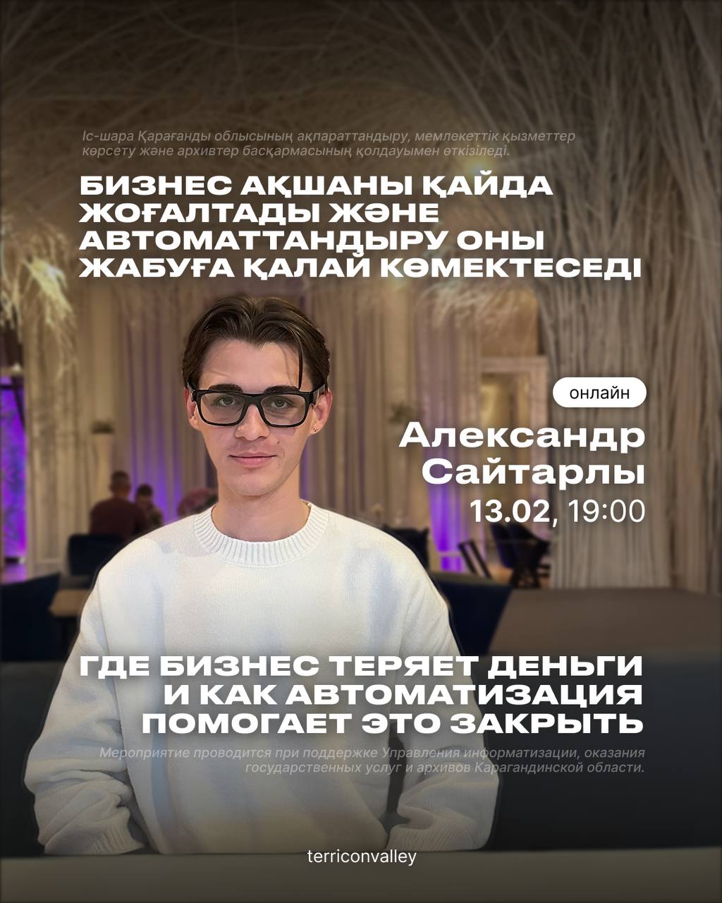 Участие в лекции бесплатное, регистрация по ссылке: https://terricon.kz/ru/business