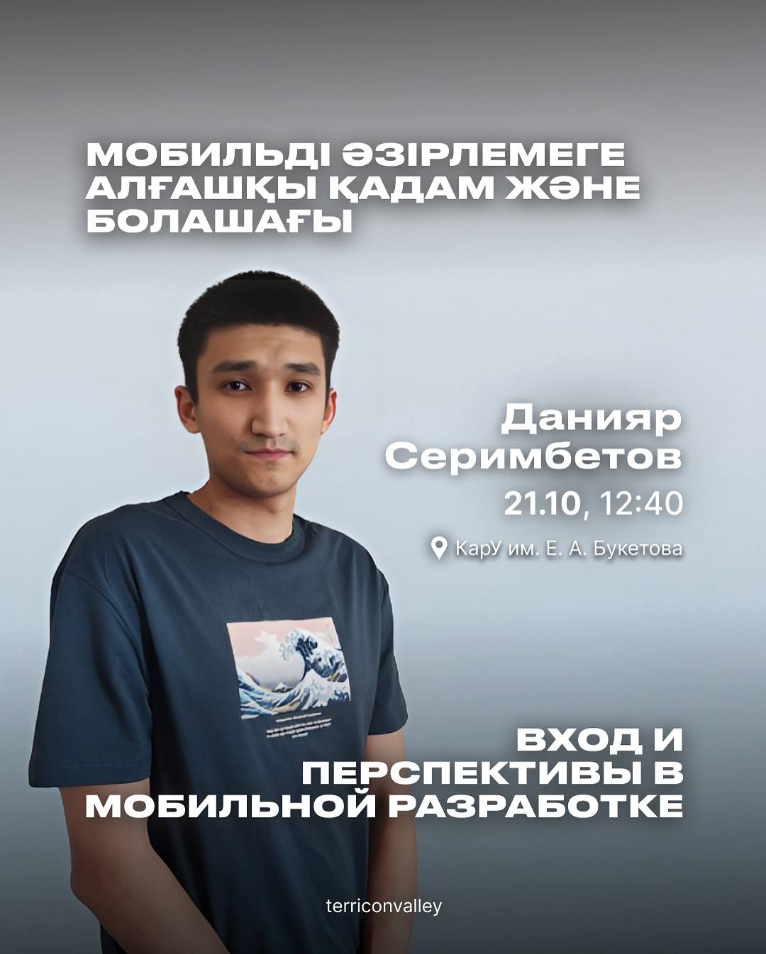 21 октября в Карагандинском национальном исследовательском университете им. Е.А. Букетова состоится лекция “Как стать мобильным разработчиком”. Участники узнают, с чего начать путь в IT и как построить карьеру в одной из самых востребованных сфер технологий.