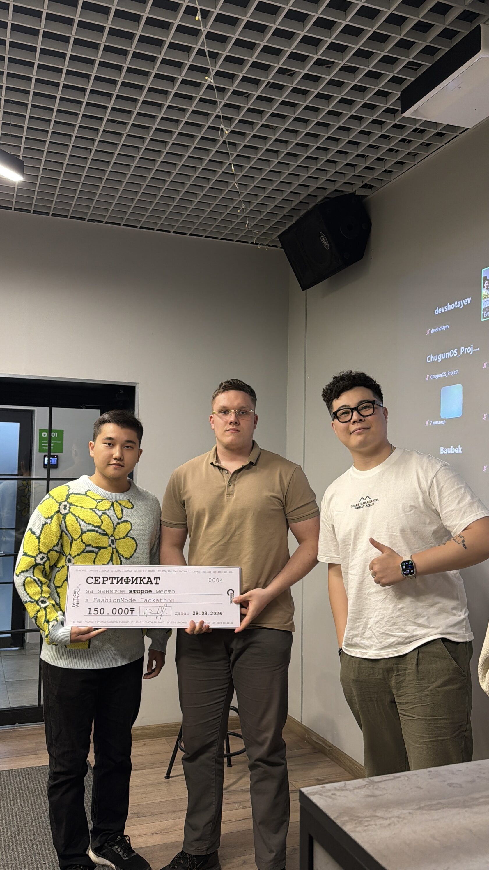 Второе место и 150 000 тенге получила команда №50 из Алматы – Нуридин Нурман и Нуралы Абдрашев. Участники представили прототип виртуальной примерки одежды с AI-стилистом, генерацией изображений, подбором альтернативных образов и рекомендациями с учетом гардероба пользователя.