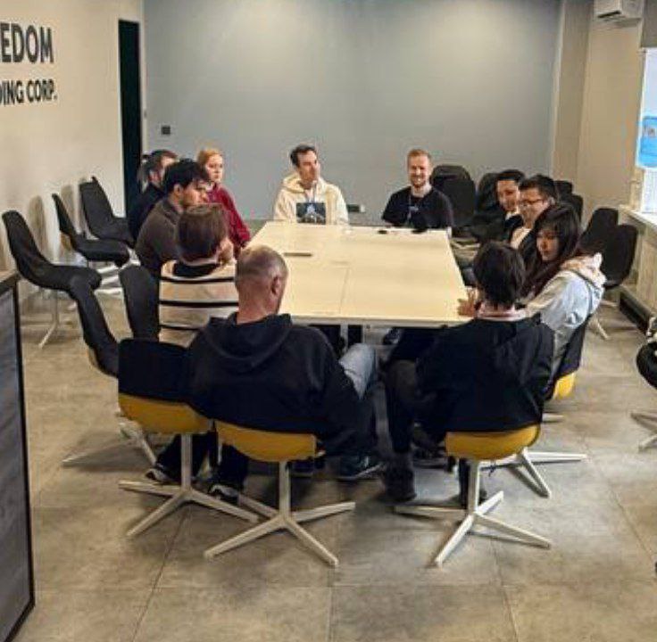 Модератором встречи стал преподаватель английского и переводчик Дмитрий Овчинников, который помог участникам чувствовать себя свободнее в диалоге и подталкивал к живому обсуждению. В центре разговора оказались две ключевые темы: использование искусственного интеллекта в работе и любимые языки программирования или фреймворки. Разработчики делились личным опытом, рассказывали о проектах, которые удалось реализовать, и обсуждали сложности, с которыми сталкивались.