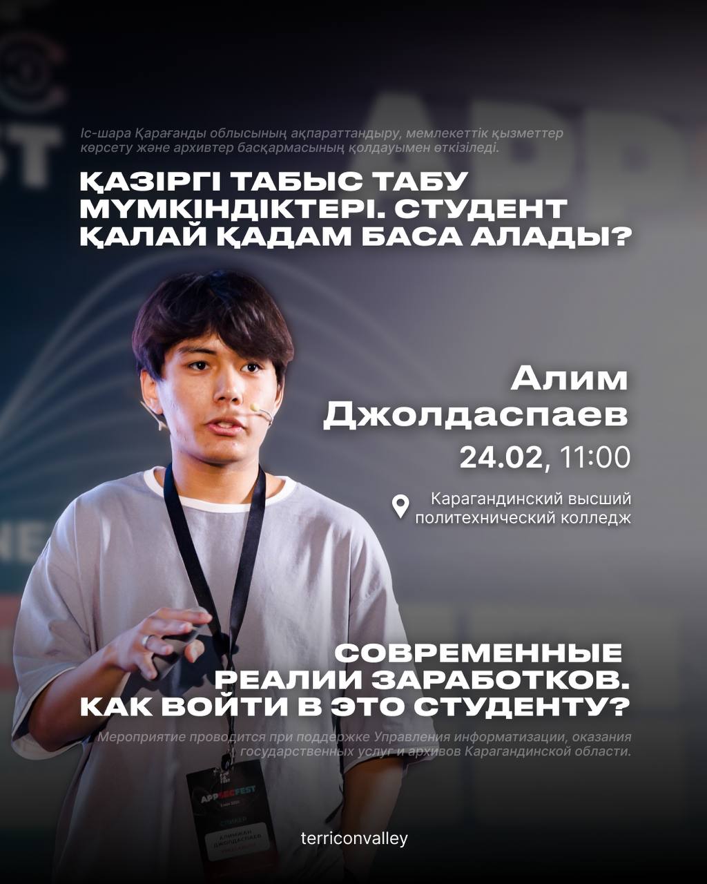Мероприятие проводится при поддержке Управления информатизации, оказания государственных услуг и архивов Карагандинской области.