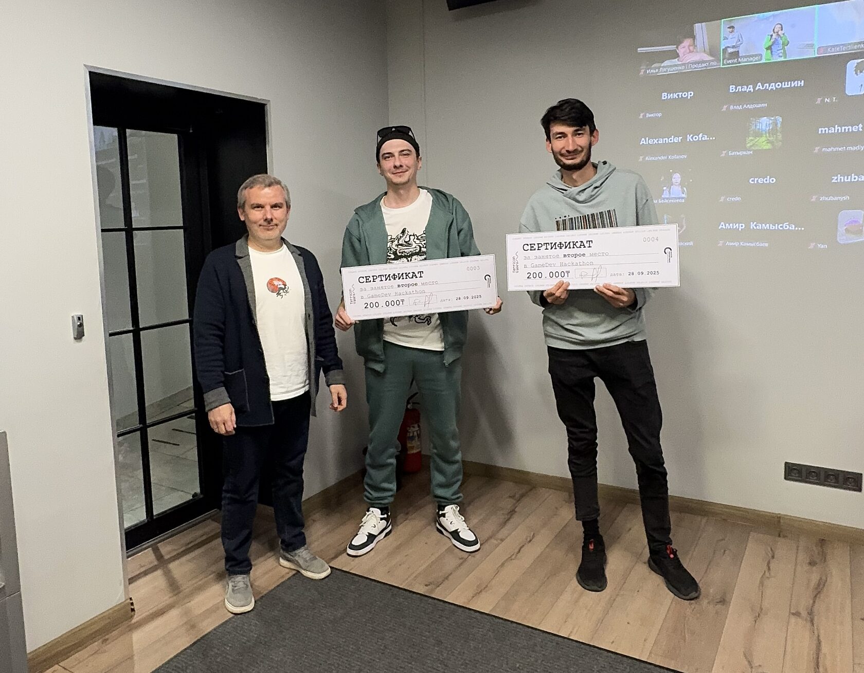 По итогам хакатона жюри выбрало лучших из лучших. В кейсе по дизайну персонажа и местности первое место заняла 29 команда из Сарани – Виктор Хитров и Владислав Алдошин. Победители получили 300 000 тенге. Второе место и денеженый приз в размере 200 000 тенге завоевала 20 команда из Семея в составе Виталия Баймуратова и Назара Тореханова.