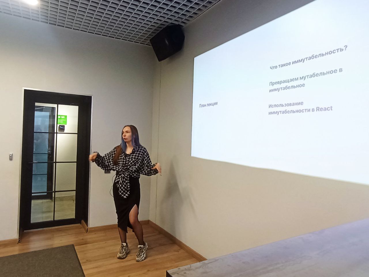 24 мая в Караганде состоялась открытая лекция на тему «Иммутабельность в JavaScript», которую провела фронтенд-разработчик Елизавета Козина. Мероприятие собрало более 50 участников — студентов, junior-разработчиков и фрилансеров, заинтересованных в улучшении качества своего кода и понимании современных подходов в веб-разработке.